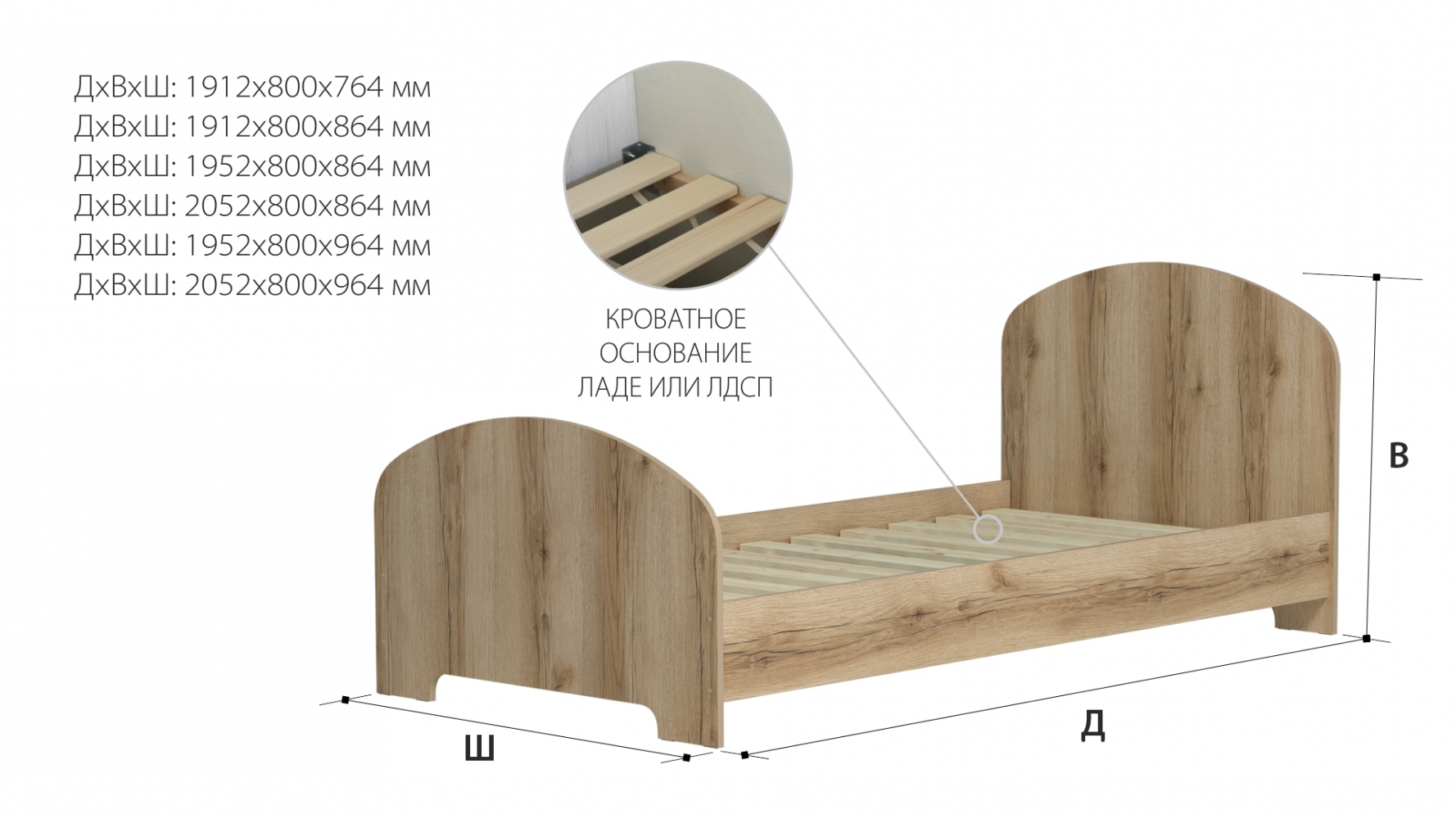 Кроватное основание: ЛАДЕ или ЛДСП.